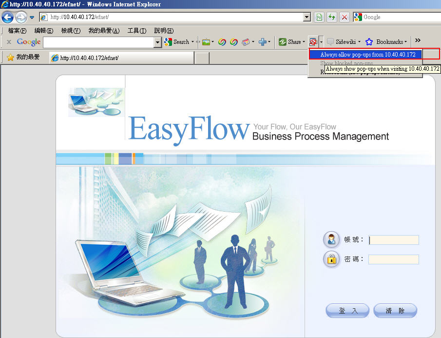 4.若有安裝其他工具類Toolbar,請設定允許彈出視窗: