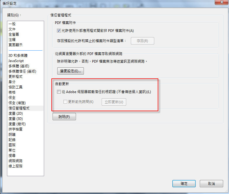6-2.關閉Acorbat Reader 10自動更新: