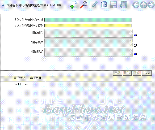 2. 您可以透過本維護作業,建立不同之文件管制中心,分別管制審核不同文件。