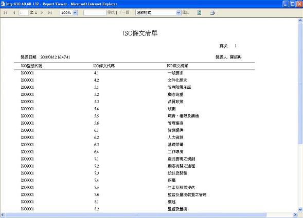 首 頁 --> ISO文件管理 --> ISO文管報表 --> ISO條文清單
