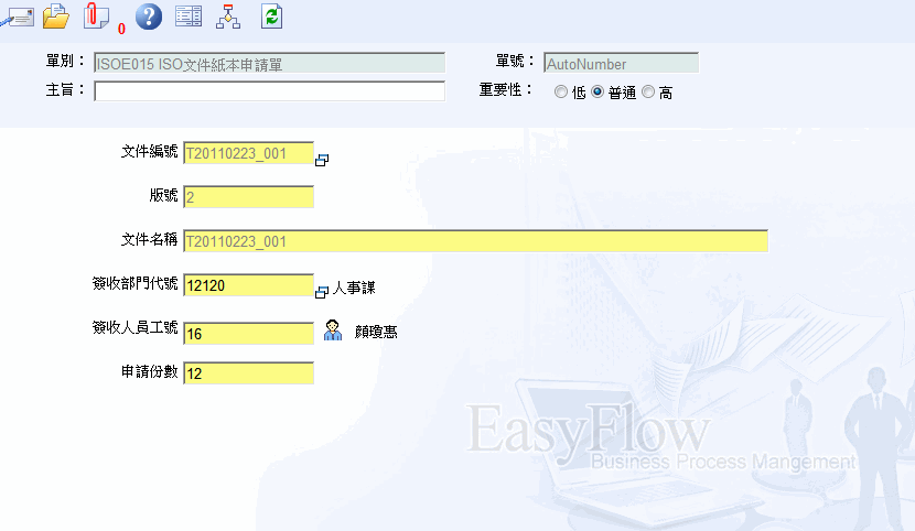 當使用者想申請文件紙本時, 可利用此表單申請。