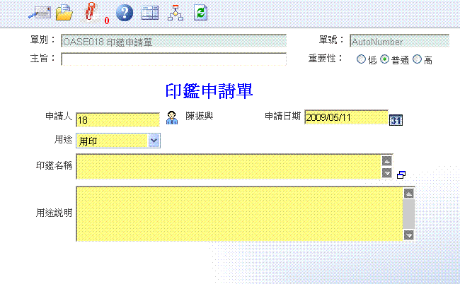 首 頁 --> OAS 電子表單清單 --> 印鑑申請單