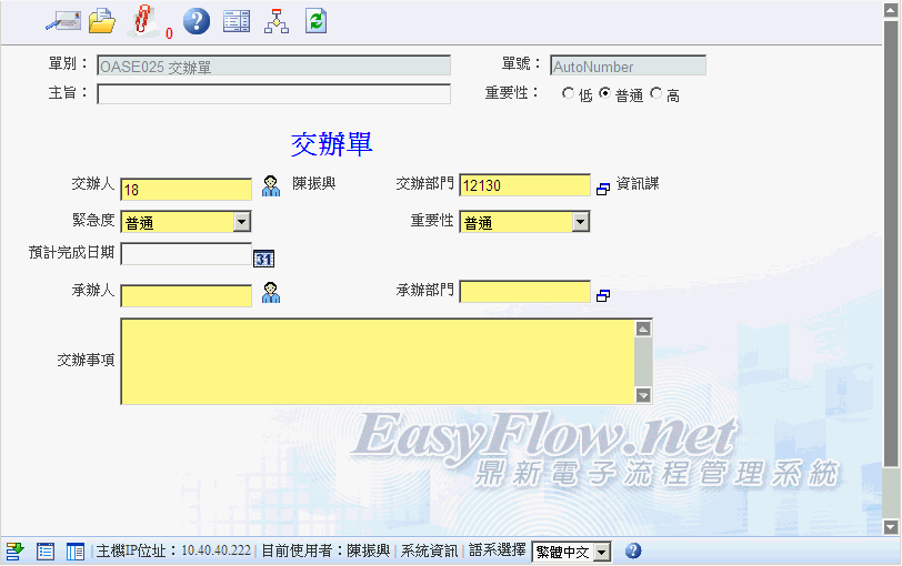 提供一個公司內部部門之間彼此的交辦事項,可透過此系統做追?控管。