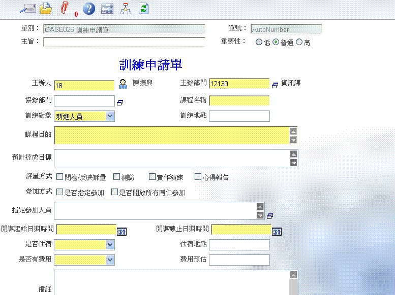 首 頁 --> OAS 電子表單清單 --> 訓練申請單